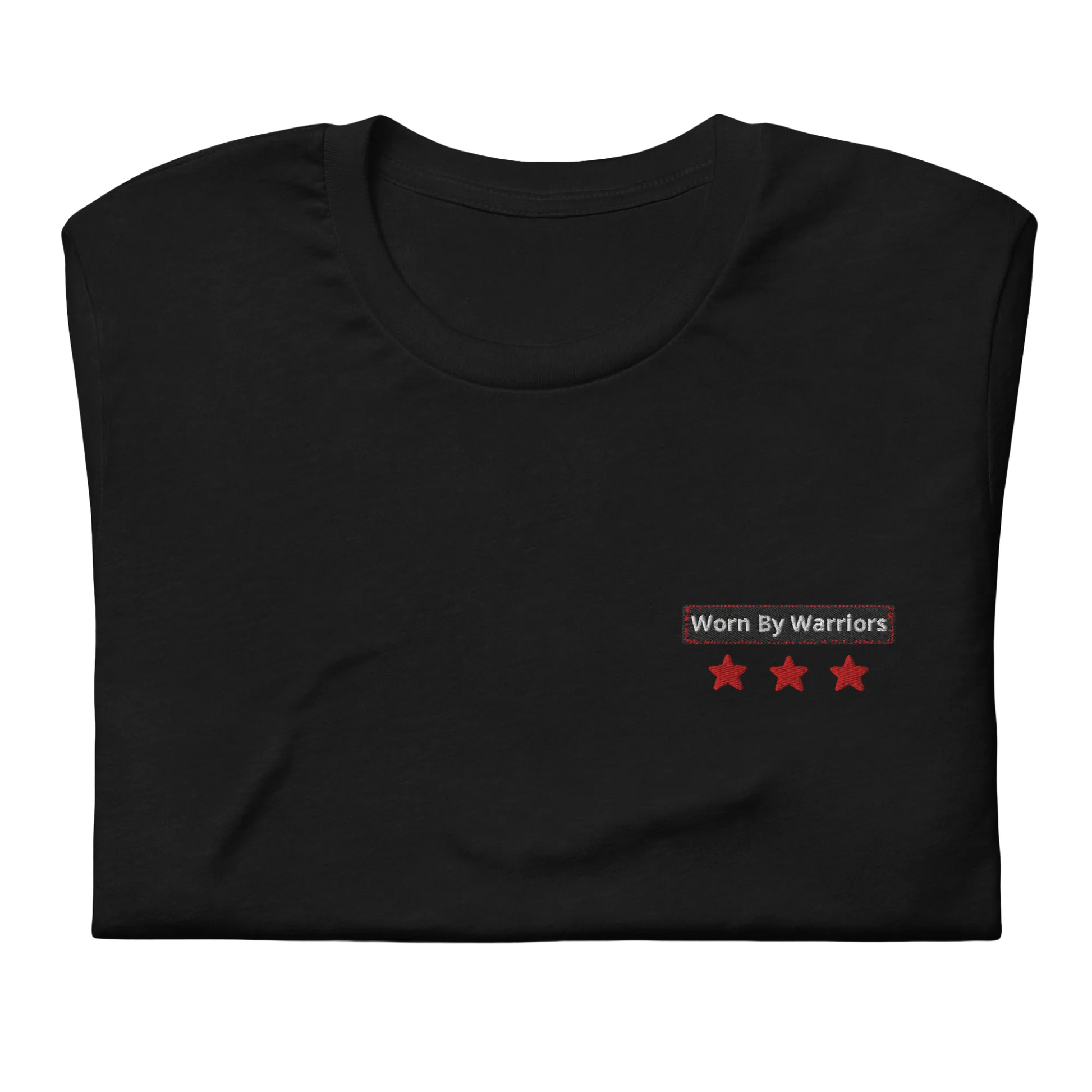 Worn By Warriors embroidered patch on the front. Crafted for those who stand strong in their service and their country.